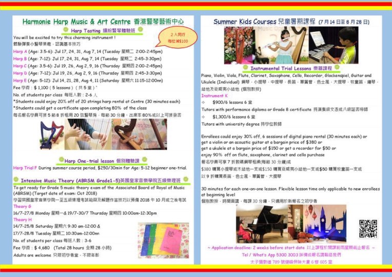 豎琴暑期課程2019 現正招生‼️